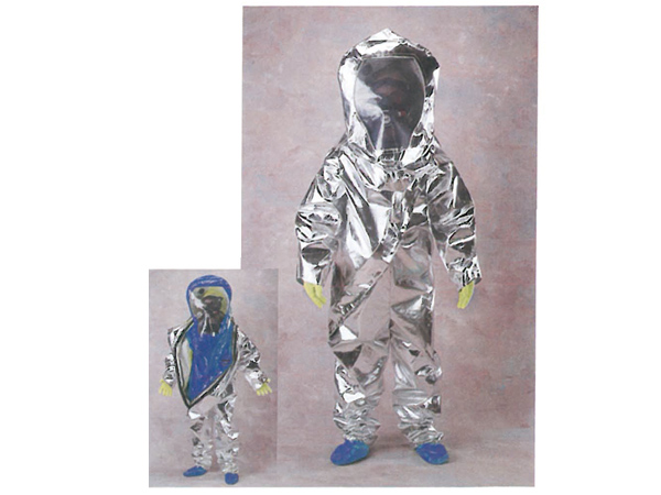 1、兩件式設(shè)計,外層為玻璃纖維鍍鋁隔熱防護層,可抵御95%以上的熱輻射內(nèi)層為A級氣密型防化服,分別起到不同防護作用